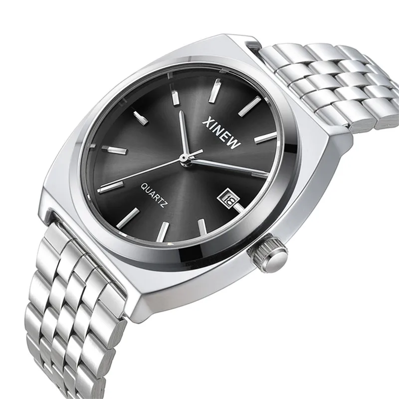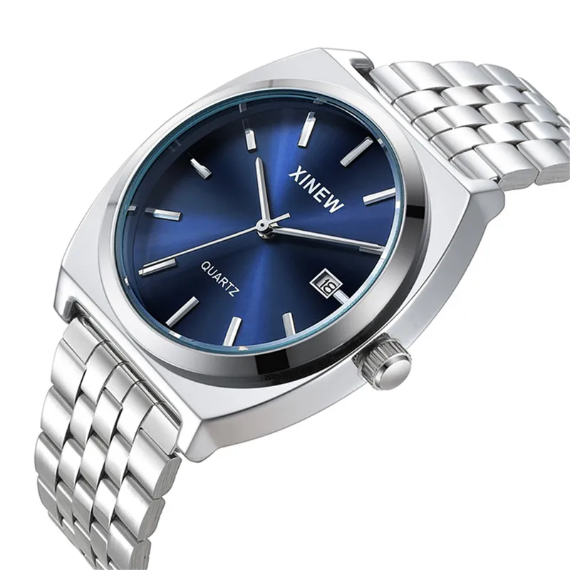Équipée d’un mouvement quartz précis, cette montre assure une lecture fiable de l’heure au quotidien. La fonction calendrier complet avec affichage de la date ajoute une touche pratique, tandis que le verre protège efficacement le cadran. Avec son diamètre équilibré et son épaisseur fine, elle s’adapte facilement à tous les styles vestimentaires. Cette montre XINEW est un choix idéal pour l’homme moderne, à la recherche d’un accessoire élégant, simple et polyvalent, alliant design soigné et praticité.